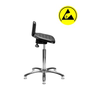 Banco industrial ESD sit-stand o antifatiga. Bancos sit-stand antiestáticos que ayudan a disminuir la tensión de espalda y piernas al recargar el peso sobre un banco antifatiga y distribuir el peso corporal. Recomendado para puestos de trabajo con componentes electrónicos, sustancias altamente inflamables o gasolineras.